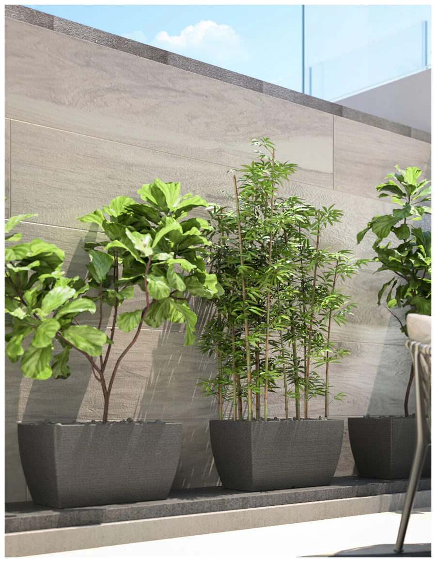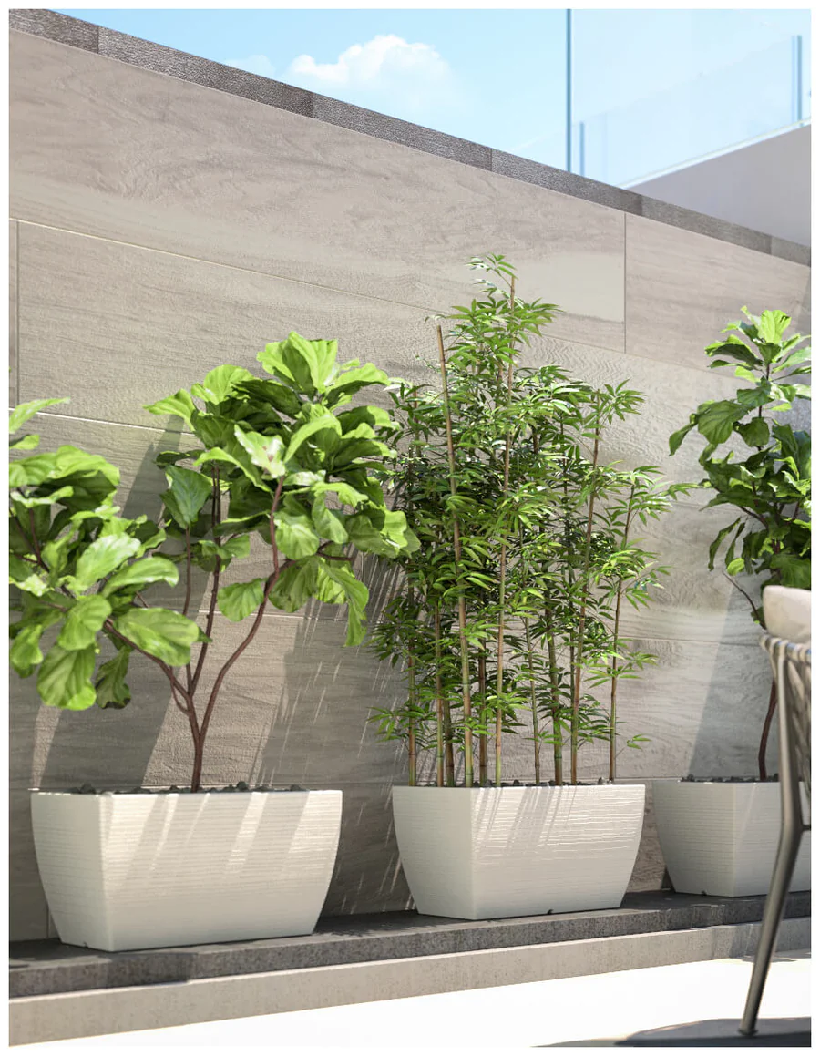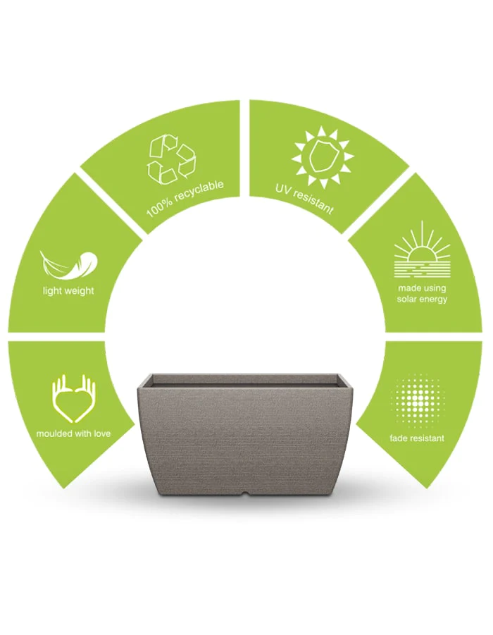 Bello RT SERIES are Rectangular Lightweight Durable planters made from UV stabilised and non-fading colours. These contemporary design planters can be used as external decorative elements for your inner pots or filled with light weight soil to grow you plants directly.