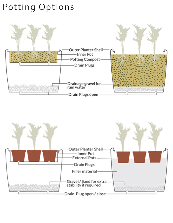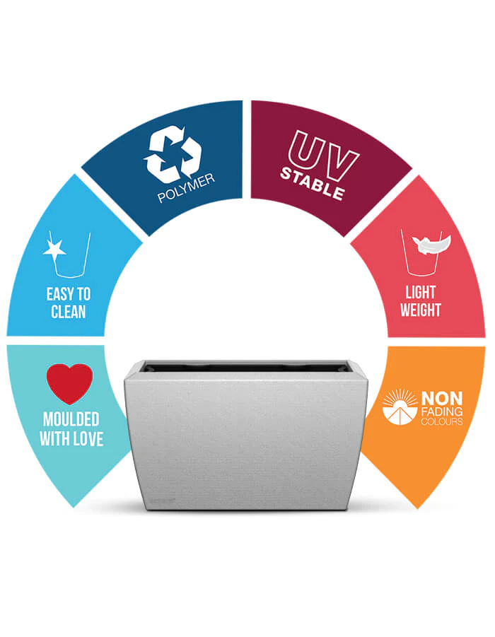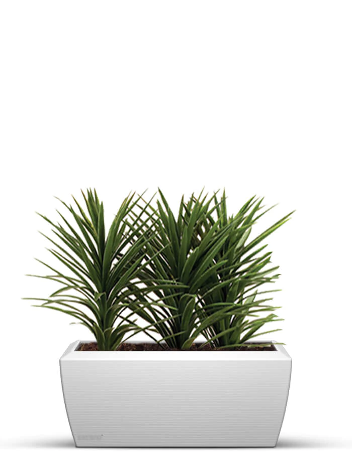 This rectangular long, narrow plant pots can create environments and segment others, like a green divider. A modern twist to a rectangle with curve edges, these three-dimensional planters are versatile and blend easily in most surroundings. Use them in a row or in a combination of different heights to create your unique space.