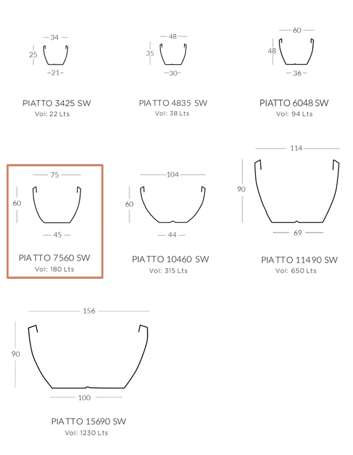 - Half Soil volume cavity for extra light weight light weight useage