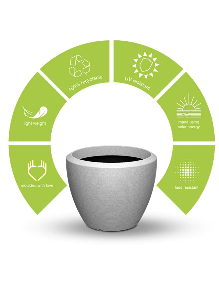 Piatto series are Lightweight and durable planters made from UV stabilised and non fading colours. These round shaped planters are available in warm stone texture and solid coloured finishes.